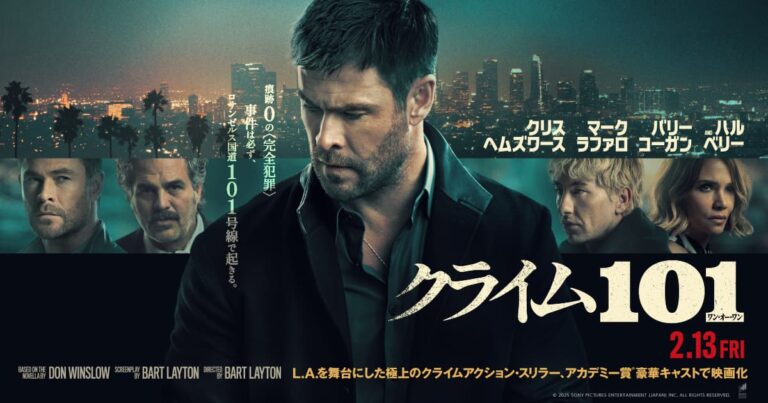 原作者のドン・ウィンズロウのことは詳しく知らないけれど、“犯罪小説の巨匠”と呼ばれたりもするらしい。オリバー・ストーンが監督した『野蛮なやつら/SAVAGES』はイケイケでヤバいやつらの話だった気がするけれど、『クライム101』の主人公デーヴィス(クリス・ヘムズワース)はもっとクールで慎重だ。それだけに派手さには欠けるけれど、黒い衣装に身を固めたスタイルでとても渋い映画になっている。