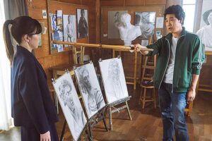 明子は北見が絵画教室に通っているということを知り、そこで日高先生(大泉洋)と出会うことになる。日高はなかなか強烈なキャラで、竹刀を振り回しながら「描け」と命ずるスパルタ教師だ。今、そんな教師がいたらたちまち炎上して、教師を辞めさせられることになるんじゃないだろうか。明子は日高の下で絵を学ぶことになるのだが……。